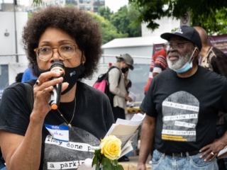 Marsha Coleman-Adebayo with Rev. Segun Adebayo at BACC Juneteenth celebration, 2021