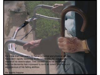 With her constant use of the camera to emphasize pressing issues in the world around her, Rebhan commemorates her passages from young adult to mother of two sons, then mutli-year caregiver of a once-dynamic immigrant father as he declines in old age, to her forthrightly activist present.